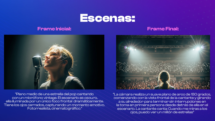 - Tipo de plano (close-up, drone shot, wide shot).